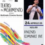 Le 24 avril, à 21h00, au Multisala Cinema Nuovo de Lioni, "Vincenzo Comunale Live", le quatrième spectacle du festival "Teatro in Movimento".