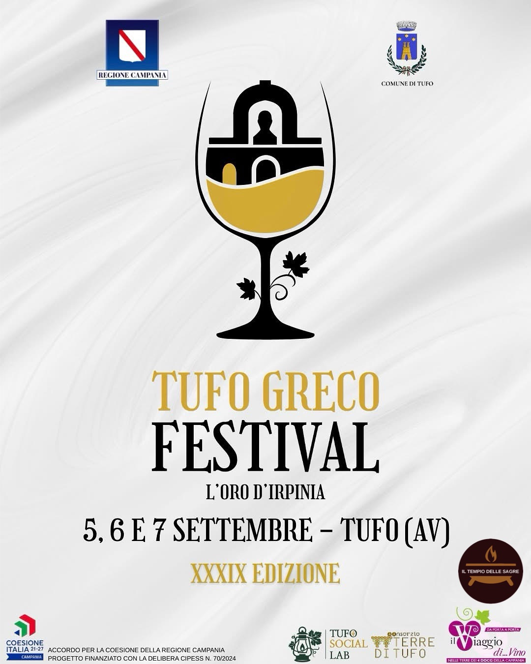 Giunto alla sua XXXIX edizione, il Tufo Greco Festival rappresenta un appuntamento imperdibile per appassionati di vino e turisti, che, ogni anno, accorrono per vivere un'esperienza immersiva tra cantine, vigneti, degustazioni guidate, gastronomia e spettacoli musicali.