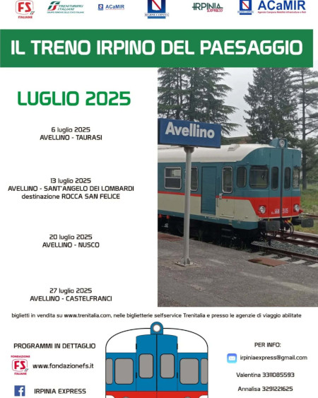Domenica 13 Luglio i vagoni di Irpinia Express raggiungeranno Rocca San Felice. La giornata inizia dalla Stazione di Avellino. Da qui si parte verso Sant’Angelo dei Lombardi, piccolo borgo ricco di fascino e storia. All’arrivo, una navetta accompagna i viaggiatori alla Mefite, una suggestiva sorgente di gas naturale che racconta la forza della natura incontaminata. Dopo la visita, si torna al borgo per il pranzo, che può essere organizzato secondo diverse opzioni: si può scegliere un pranzo al sacco in autonomia oppure affidarsi all’accoglienza della Pro Loco con un pasto tradizionale sotto il grande tiglio – un’esperienza che include antipasto, primo e una degustazione del pregiato formaggio Carmasciano, oltre ad una terza opzione presso le attività ristorative locali. Nel pomeriggio il cuore del borgo si anima con la manifestazione "Circola", un evento dedicato alla cultura, alla sostenibilità e alla socialità. Laboratori di buone pratiche alimentari, installazioni artistiche con luminarie, attività creative legate a fiori e ghirlande animano le vie del centro. Non manca una fiera del bagagliaio, dove il riuso e la creatività sono protagonisti. Si rientra quindi in navetta alla Stazione di Sant’Angelo dei Lombardi, per tornare poi ad Avellino, chiudendo così una giornata ricca di emozioni, conoscenza e scoperta.