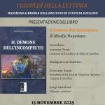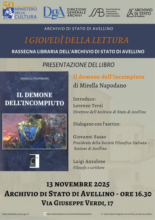 Giovedì 13 novembre 2025, alle ore 16:30, si terrà un nuovo appuntamento della rassegna libraria dell’Archivio di Stato di Avellino “I giovedì della lettura”.