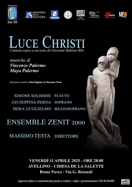 L’evento inaugurale si terrà venerdì 11 aprile alle ore 20.00 presso la Chiesa Madonna de la Salette in Avellino con una proposta musicale di gran pregio in vista della Santa Pasqua: "LUCE CHRISTI", Cantata sopra un testo di Giovanni Battista Bilo, con musiche del Compositore Vincenzo Palermo, scritta nel 2002 e revisionata per l’occasione.