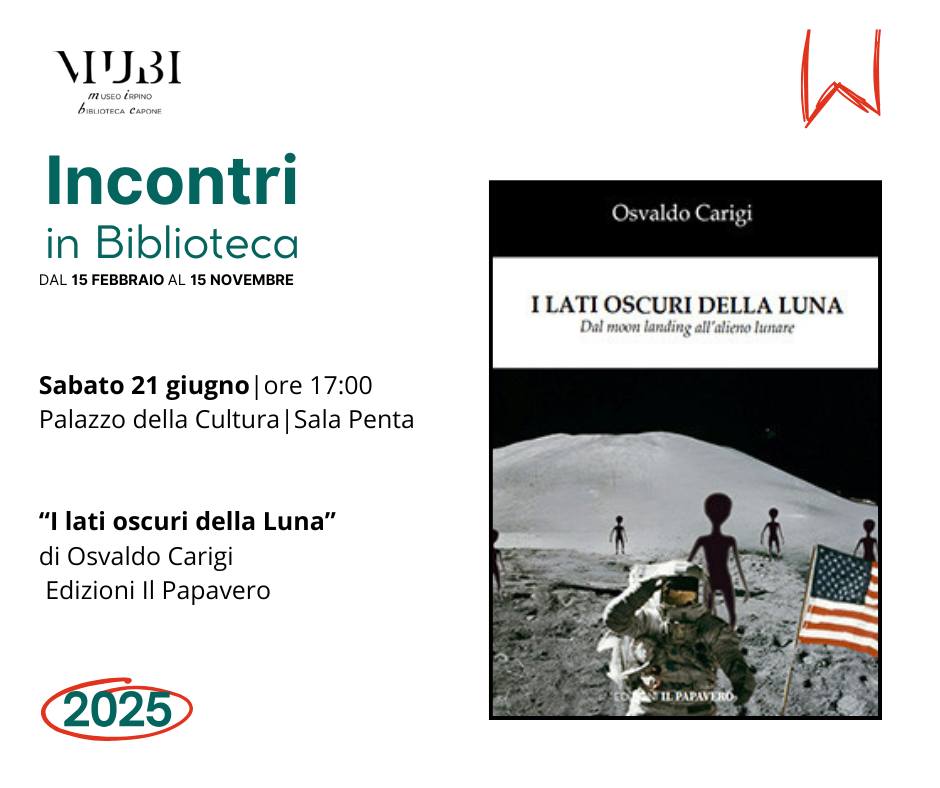 La Biblioteca Provinciale di Avellino, sabato 21 giugno alle ore 17:00 per Incontri in Biblioteca, presenta "I lati oscuri della luna" di Osvaldo Carigi.