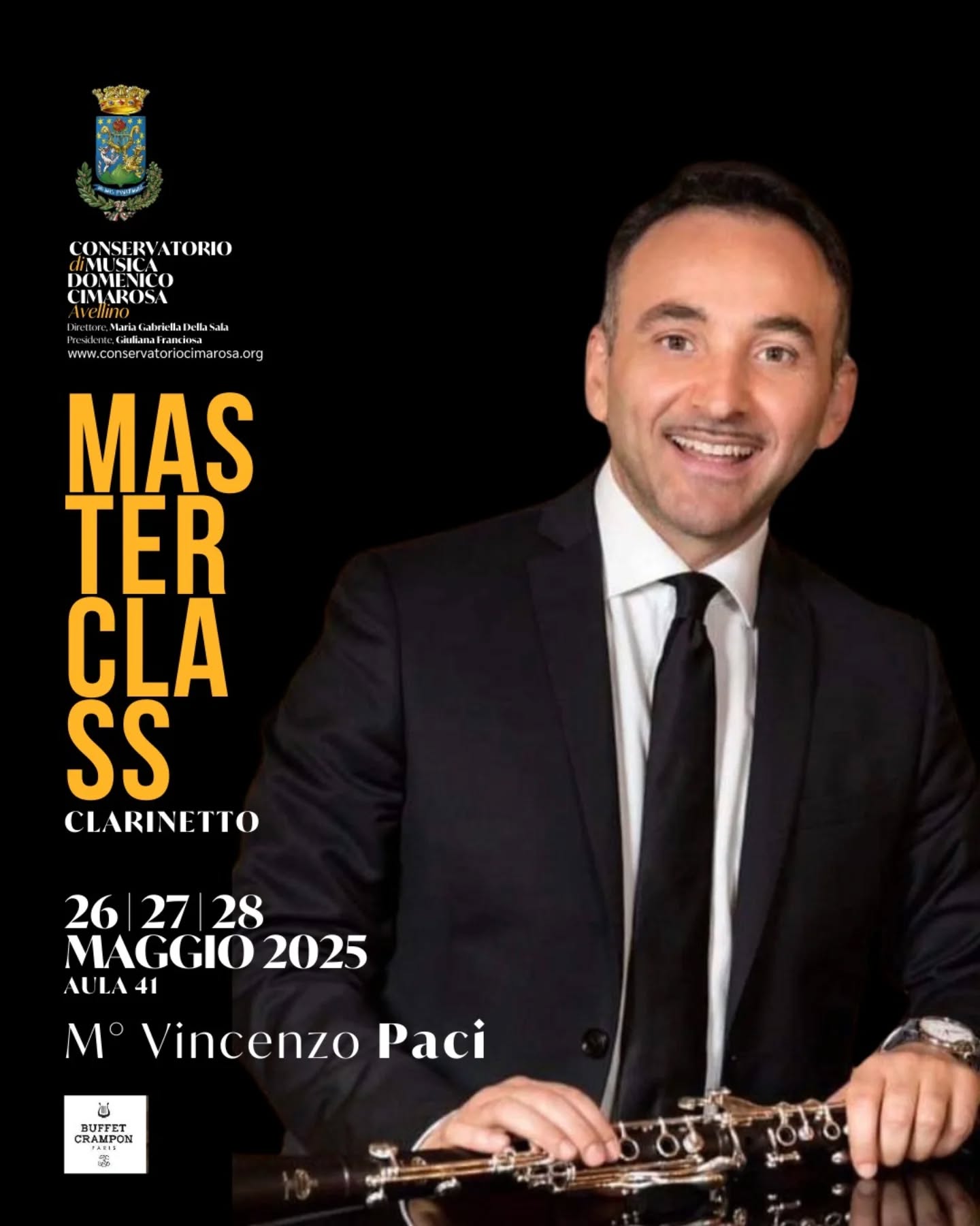 Il Conservatorio Domenico Cimarosa di Avellino, ha organizzato nelle giornate di lunedì 26, martedì 27 e mercoledì 28 maggio una masterclass di clarinetto con il maestro Vincenzo Paci.