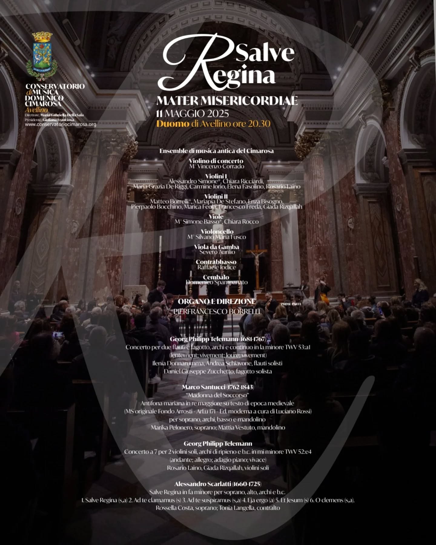 Il Duomo di Avellino ospita il concerto "Salve Regina. Mater Misericordiae" a cura dell' l’Ensemble di musica antica del Conservatorio “Domenico Cimarosa”.