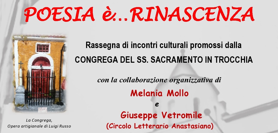 La rassegna poetica "Poesia è...Rinascenza" fondata da Giuseppe Vetromile e Melania Mollo approda ad Avellino, venerdì 9 Maggio alle ore 17:30 al Circolo della Stampa.