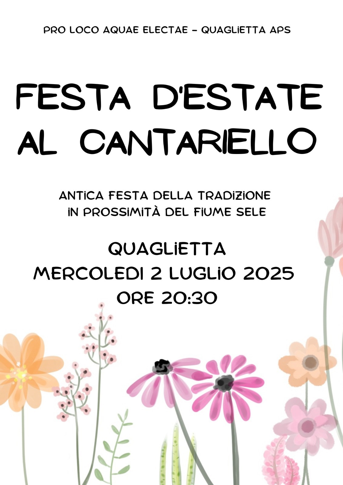 L'evento organizzato dalla Pro Loco Aquae Electae, prevede una degustazione di tipicità in un luogo caratteristico, circondato dal verde e dalle acque della sorgente Cantariello e del fiume Sele, nel borgo medievale di Quaglietta nel Comune di Calabritto.
