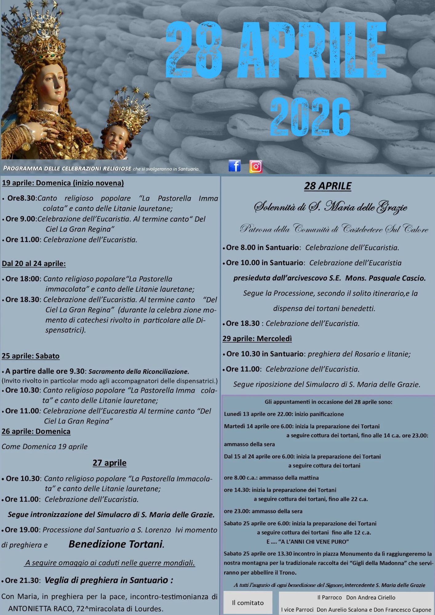 La Festa della Madonna delle Grazie si conferma anche nel 2026 uno degli appuntamenti più sentiti e identitari per la comunità di Castelvetere sul Calore, rinnovandosi il 28 aprile con un forte intreccio tra devozione religiosa e partecipazione popolare.