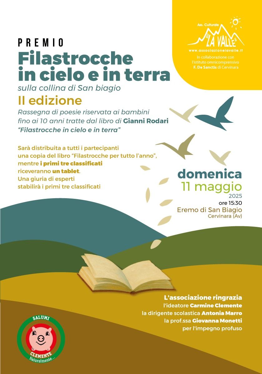 Domenica 11 maggio, sulla collina di San Biagio a Cervinara la rassegna di poesie "Filastrocche in cielo e in terra" un pomeriggio dedicato alla lettura per bambini fino ai 10 anni.