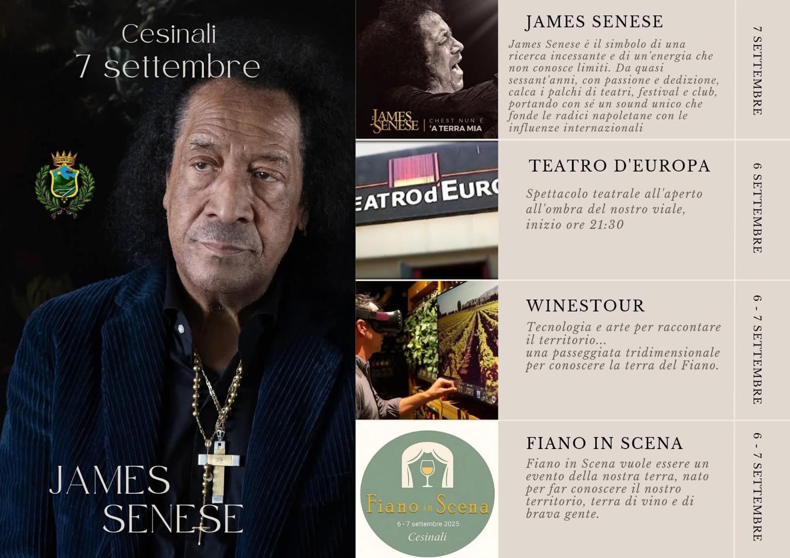 Domenica 7 settembre la rassegna si arricchirà dell' esibizione del noto jazzista internazionale James Senese.