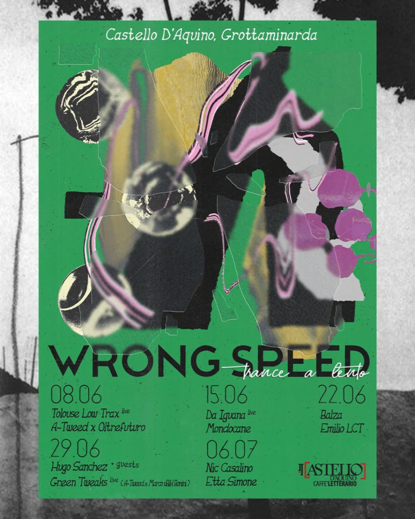 Protagonista della serata sarà Hugo Sanchez, figura di spicco della scena musicale romana e tra i maggiori pionieri dei ritmi rallentati e del pitch ribassato sui giradischi. Da anni attivo con i progetti Front De Cadeaux e Alien Alien, oltre che con lo storico collettivo Tropicantesimo, Sanchez incarna perfettamente, senza compromessi, lo spirito e l’identità del format Wrong Speed, proponendo selezioni che fondono ricerca e istinto.