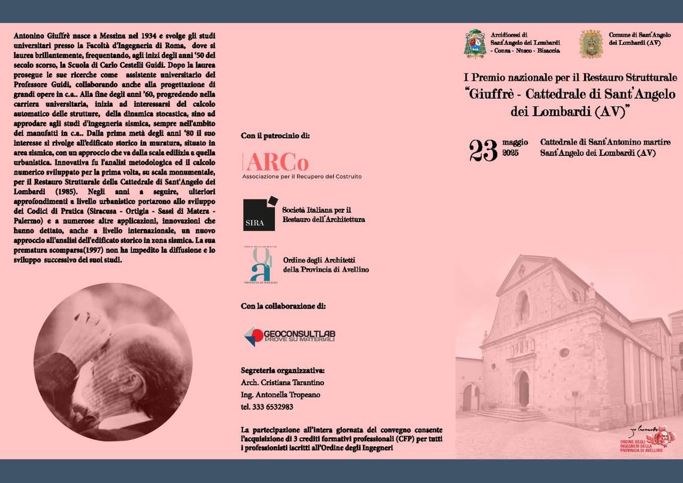 Dopo quarant'anni dalla stesura del progetto di restauro della Cattedrale di Sant'Angelo dei Lombardi, redatto dai prof. Arch. Paolo Marconi e dal prof. Ing. Antonino Giuffrè, un comitato degli studiosi del settore intende promuovere un'iniziativa culturale rivolta a valorizzare personalità scientifiche che, operando nel campo del restauro strutturale, con il loro contributo hanno determinato significativi avanzamenti nello studio delle costruzioni murarie storiche.