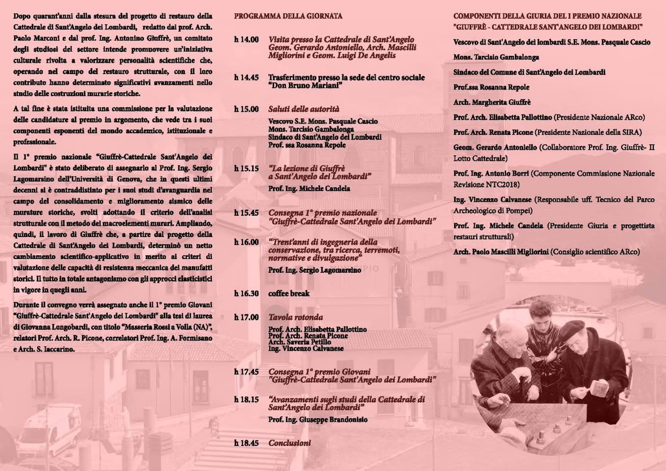 Durante il convegno verrà assegnato anche il 1° Premio Giovani "Giuffrè-Cattedrale Sant'Angelo del Lombardi" alla tesi di laurea di Giovanna Longobardi, con titolo "Masseria Rossi a Volla (NA)", relatori Prof. Arch. R. Picone, correlatori Prof. Ing. A. Formisano e Arch. S. Iaccarino.