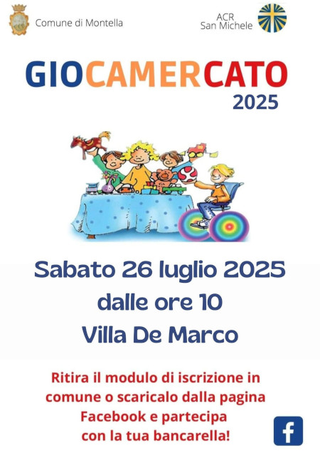 Sabato 26 Luglio a Montella torna il "Giocamercato", giunto alla 5^ edizione. Appuntamento dalle ore 10.00 presso Villa De Marco.