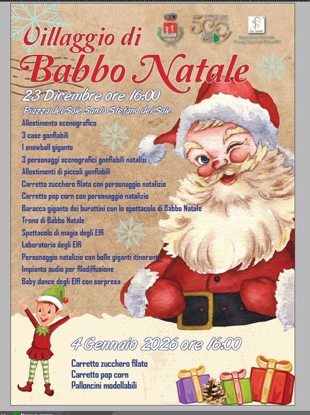 La magia del Natale arriva a Santo Stefano del Sole con il tanto atteso Villaggio di Babbo Natale, un evento pensato per regalare sorrisi, stupore e divertimento a grandi e piccoli. L’appuntamento è fissato per lunedì 23 dicembre alle ore 16:00 in Piazza del Sole, dove il cuore del paese si trasformerà in un vero e proprio mondo incantato.