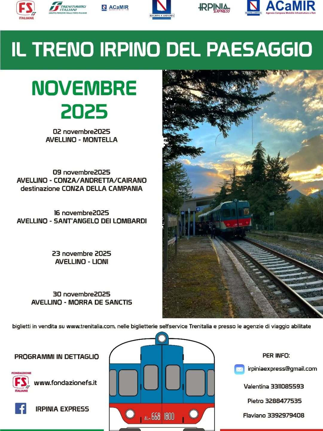 Domenica 23 novembre, il treno partirà alle ore 8.00 dalla Stazione di Avellino, con arrivo previsto a Sant’Angelo dei Lombardi,  alle ore 10.41. Da lì, una navetta condurrà i partecipanti alla Mefite, antica sorgente sulfurea celebre per la sua potenza naturale e i paesaggi quasi lunari.