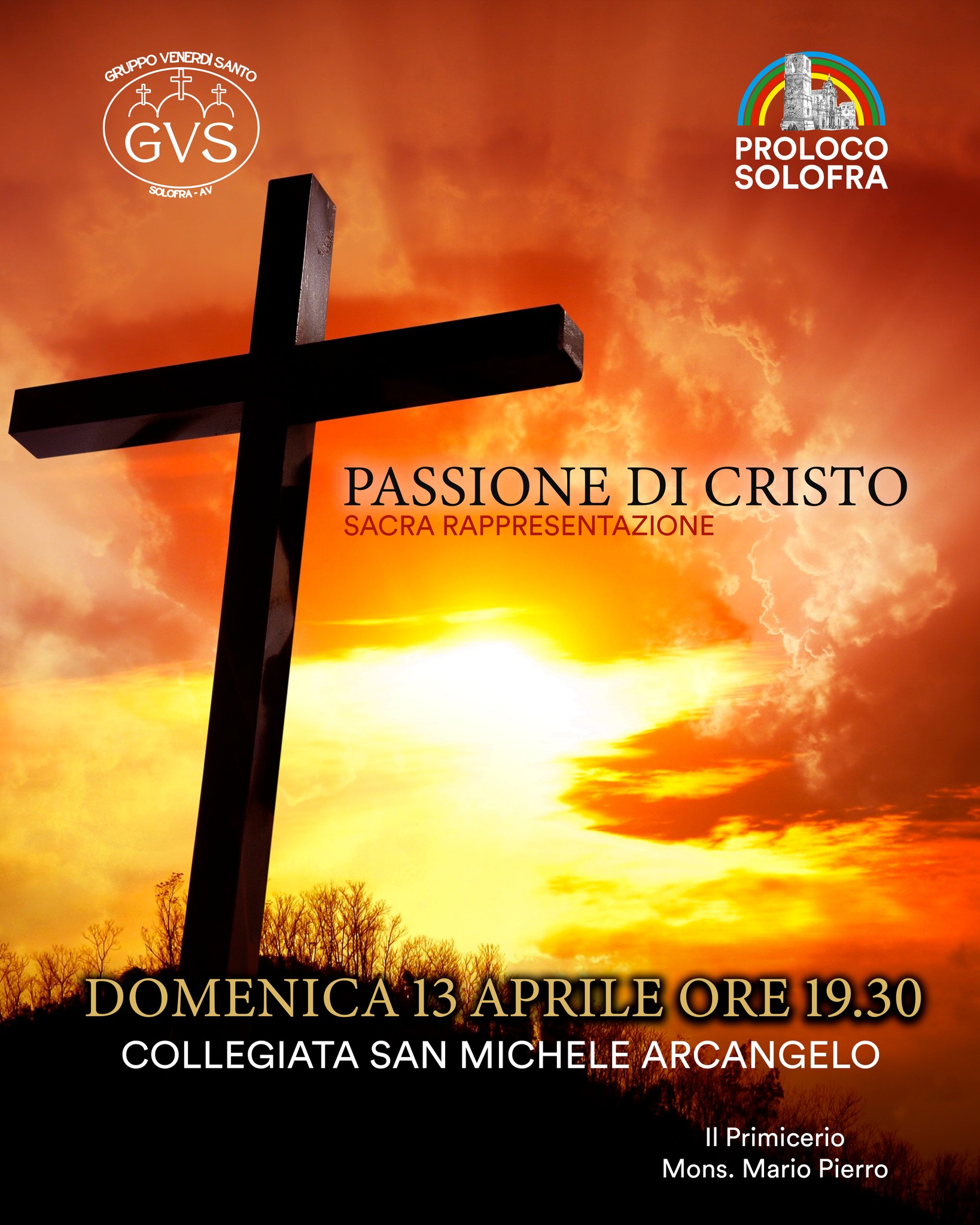 Domenica 13 Aprile, ritorna in scena a Solofra la "Passione di Cristo", rappresentazione sacra e intensa resa possibile grazie alla dedizione del gruppo "Venerdì Santo" in collaborazione con la Proloco Solofra.