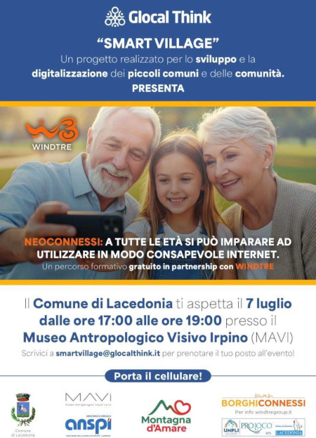 Il progetto "Smart Village", ideato e realizzato da Glocal Think per lo sviluppo e la digitalizzazione dei piccoli comuni e delle loro comunità, in partnership con la DMO Irpinia Montagna D’Amare, è stato veicolato grazie al Festival delle Radici, a cui il Comune di Lacedonia ha aderito nel 2024 e che si sviluppa nel 2025 con il nuovo format Essere & Comunità. In un'epoca in cui la connettività è diventata un pilastro fondamentale della vita quotidiana, iniziative come "NeoConnessi" si rivelano cruciali per colmare il divario digitale e garantire a tutti, indipendentemente dall'età, l'accesso e la comprensione delle opportunità offerte dalla rete.