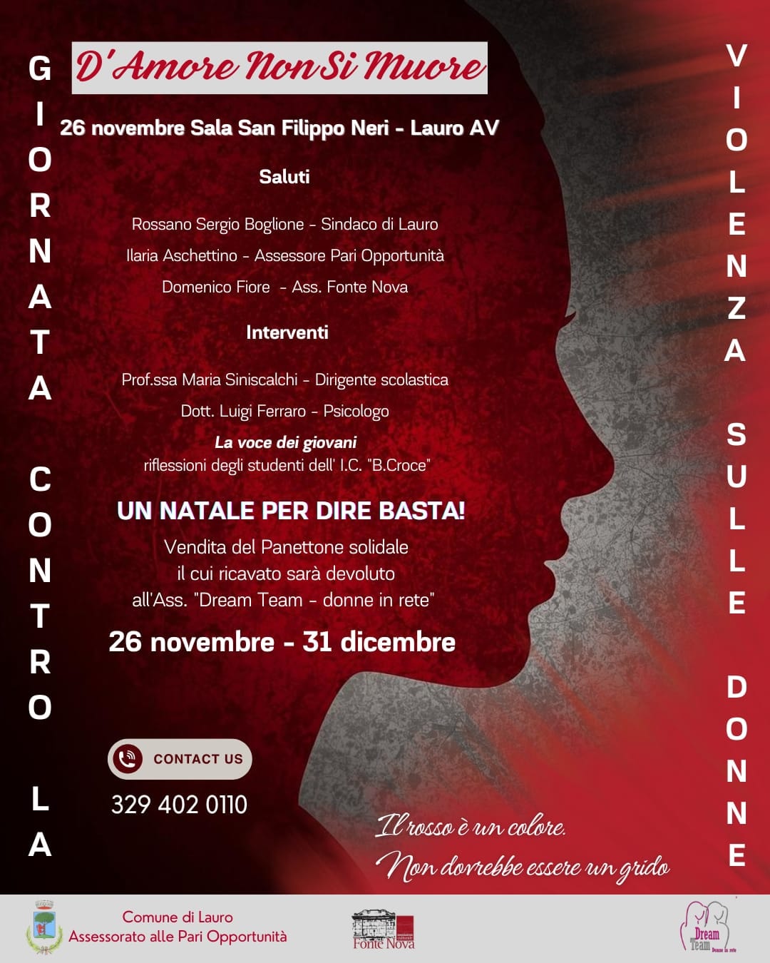 Durante l’evento verrà presentata l’iniziativa 2025: “Un Natale per dire BASTA!” con la vendita del Panettone Solidale, un gesto semplice che diventa aiuto concreto: il ricavato sarà devoluto all’Associazione “Dream Team – Donne in rete”, realtà attiva a Scampia e nell’area nord di Napoli con un Centro Antiviolenza che ogni giorno offre ascolto, sostegno psicologico, tutela legale e percorsi di autonomia per le donne che vogliono ricominciare.