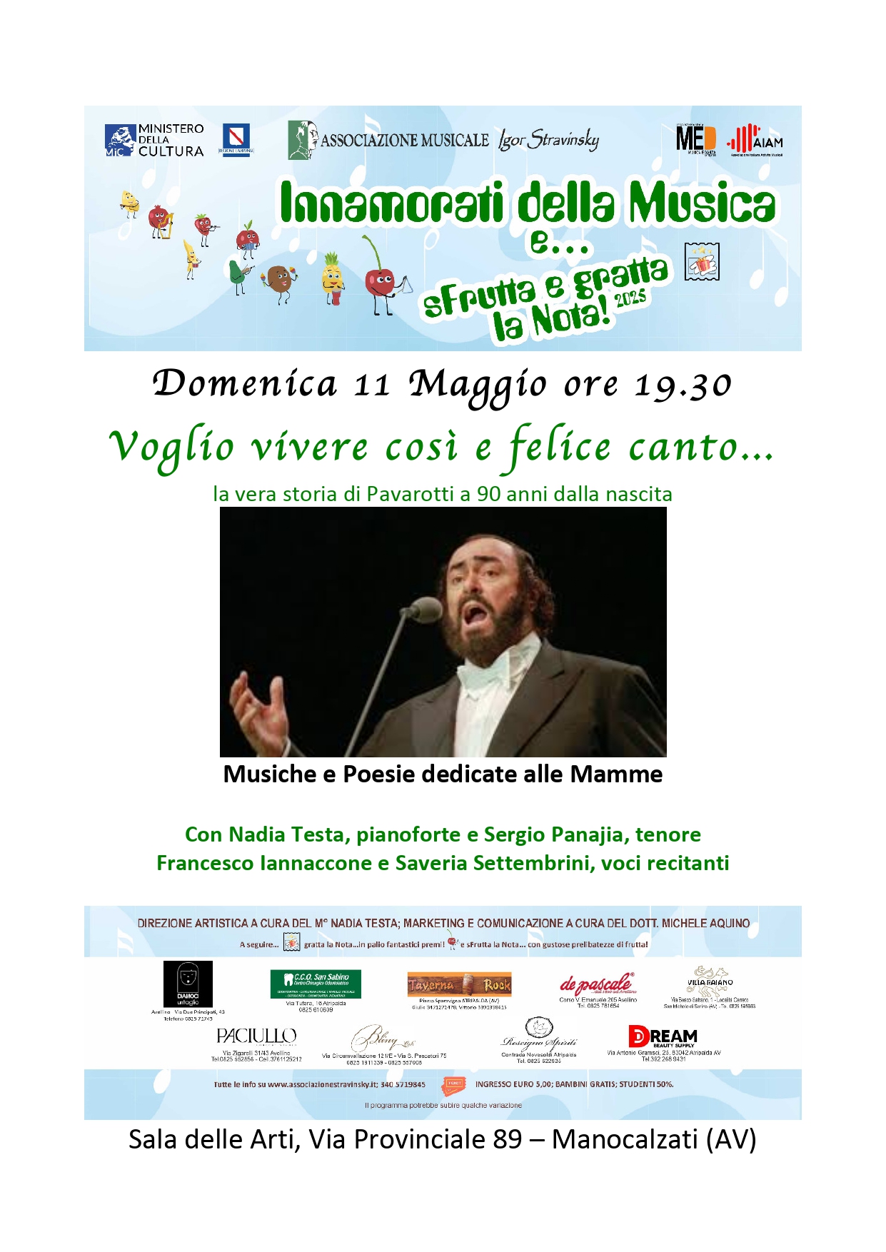 Il programma di quest’anno, pensato per celebrare i principali anniversari musicali del 2025, ha preso il via con un omaggio a Maurice Ravel nel 150° della nascita e proseguirà domenica 11 maggio alle ore 19.30 presso la Sala delle Arti di Manocalzati con un appuntamento speciale dedicato ai 90 anni dalla nascita di Luciano Pavarotti.