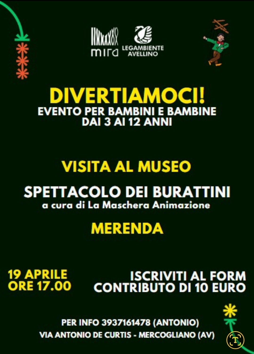 Legambiente Avellino - Alveare invita tutte le famiglie a partecipare al laboratorio per bambini e bambine dai 3 ai 12 anni, che si terrà sabato 19 aprile alle ore 17:00 presso il Museo M.I.R.A. (Museo Irpino delle Radici Aumentate), in via Antonio De Curtis, Mercogliano (AV).
