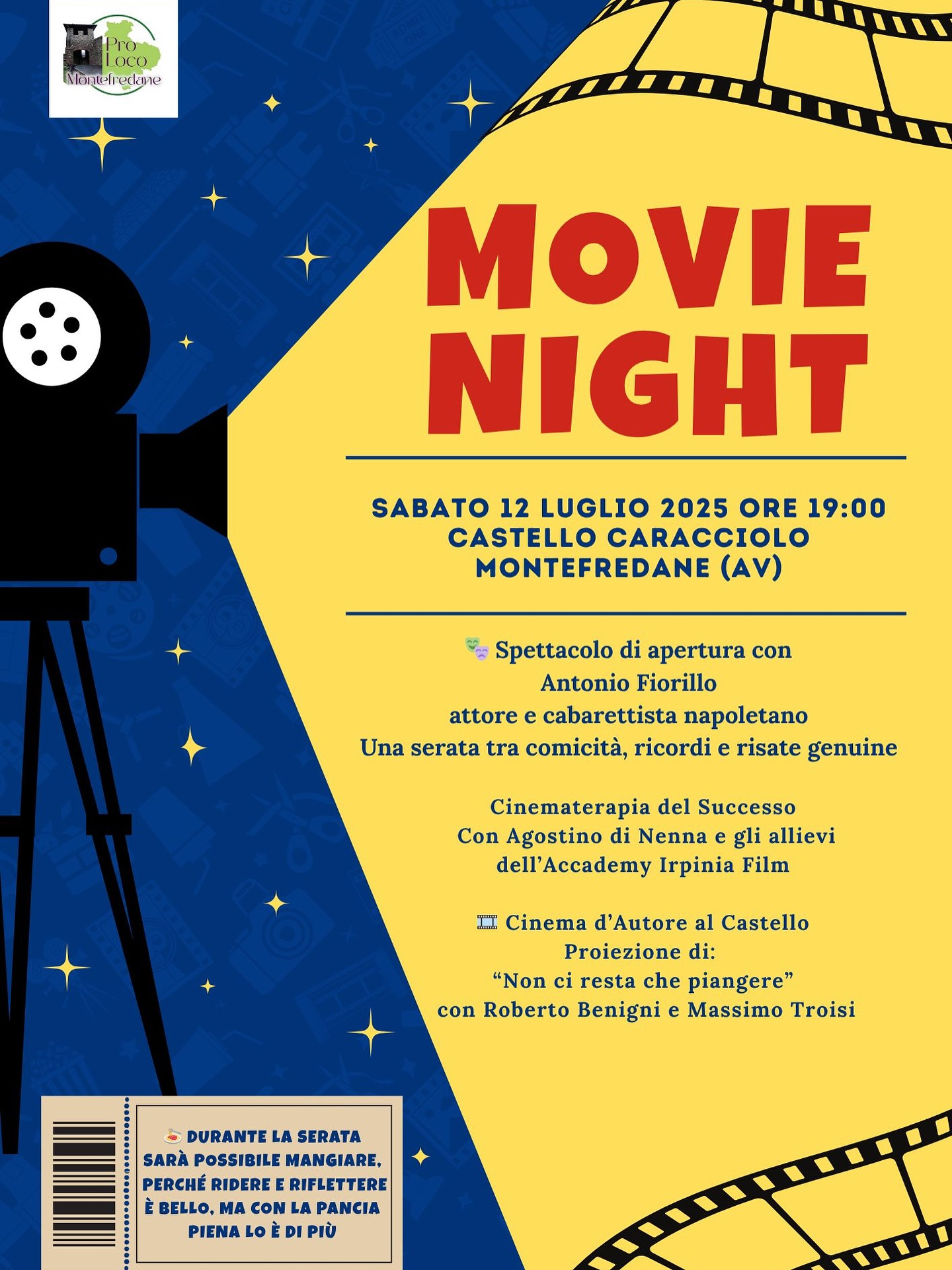 La Pro loco di Montefredane, sabato 12 luglio alle ore 19:00 ha organizzato il "Movie Night sotto le stelle!".