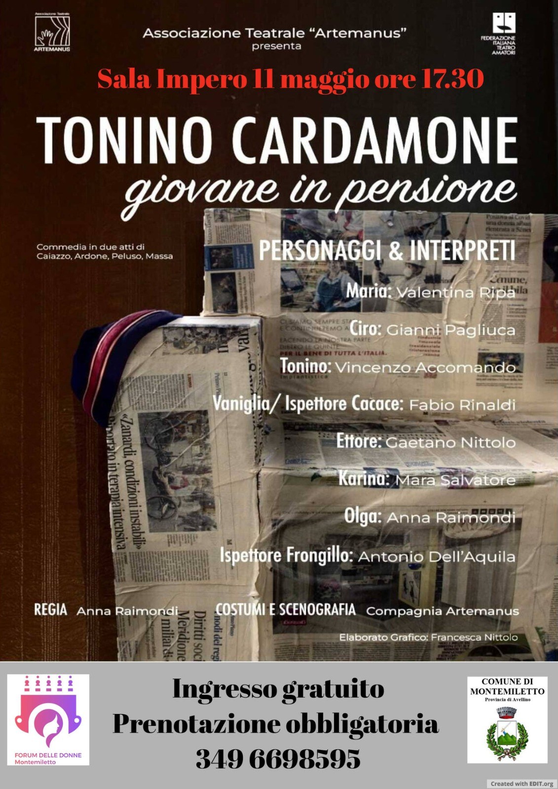 Domenica 11 maggio il Forum delle Donne di Montemiletto festeggia il suo primo anno di attività e lo farà insieme all’Associazione Teatrale 'Artemanus', già protagonista della prima rassegna promossa dal Forum, con uno spettacolo che promette risate e intrattenimento.