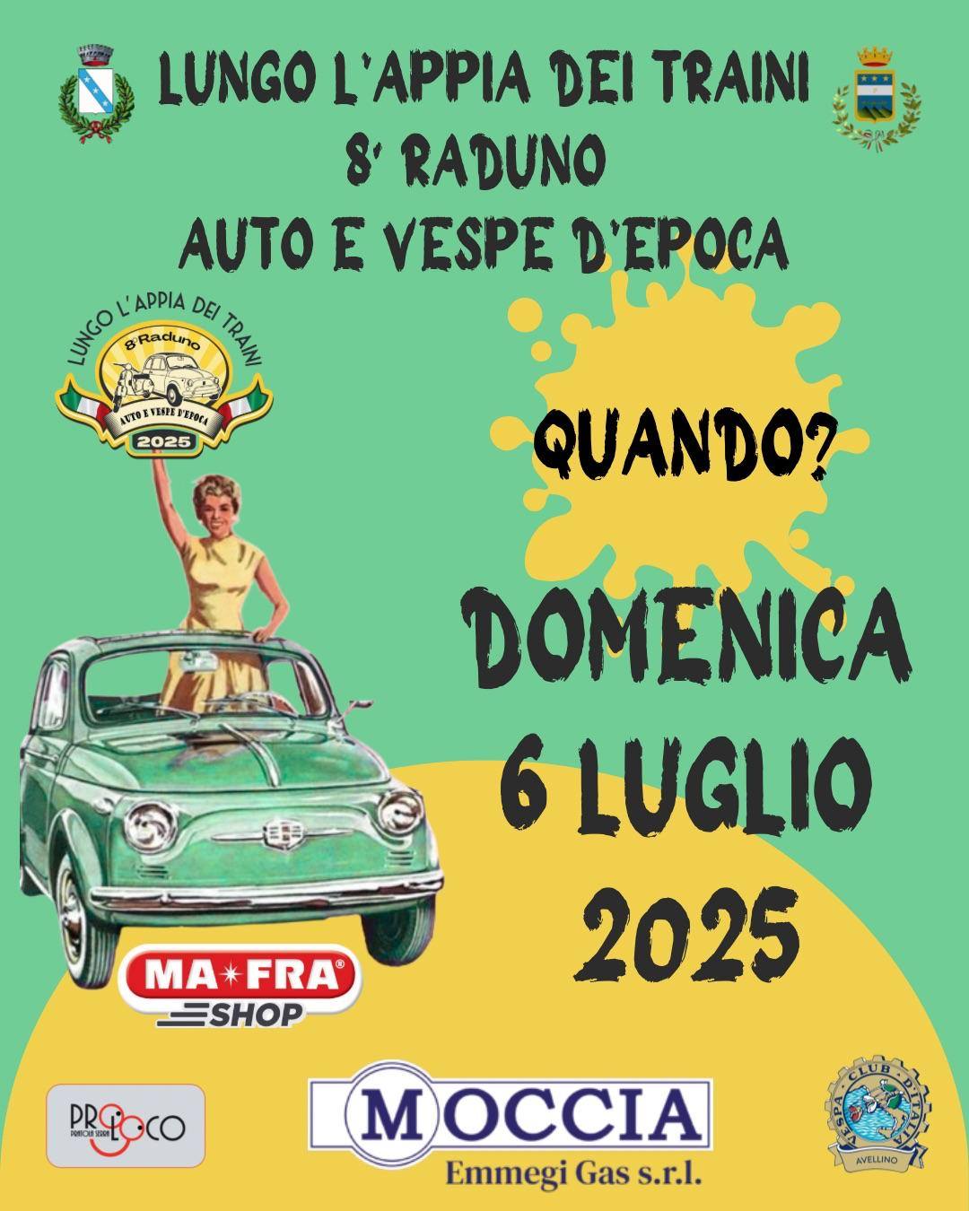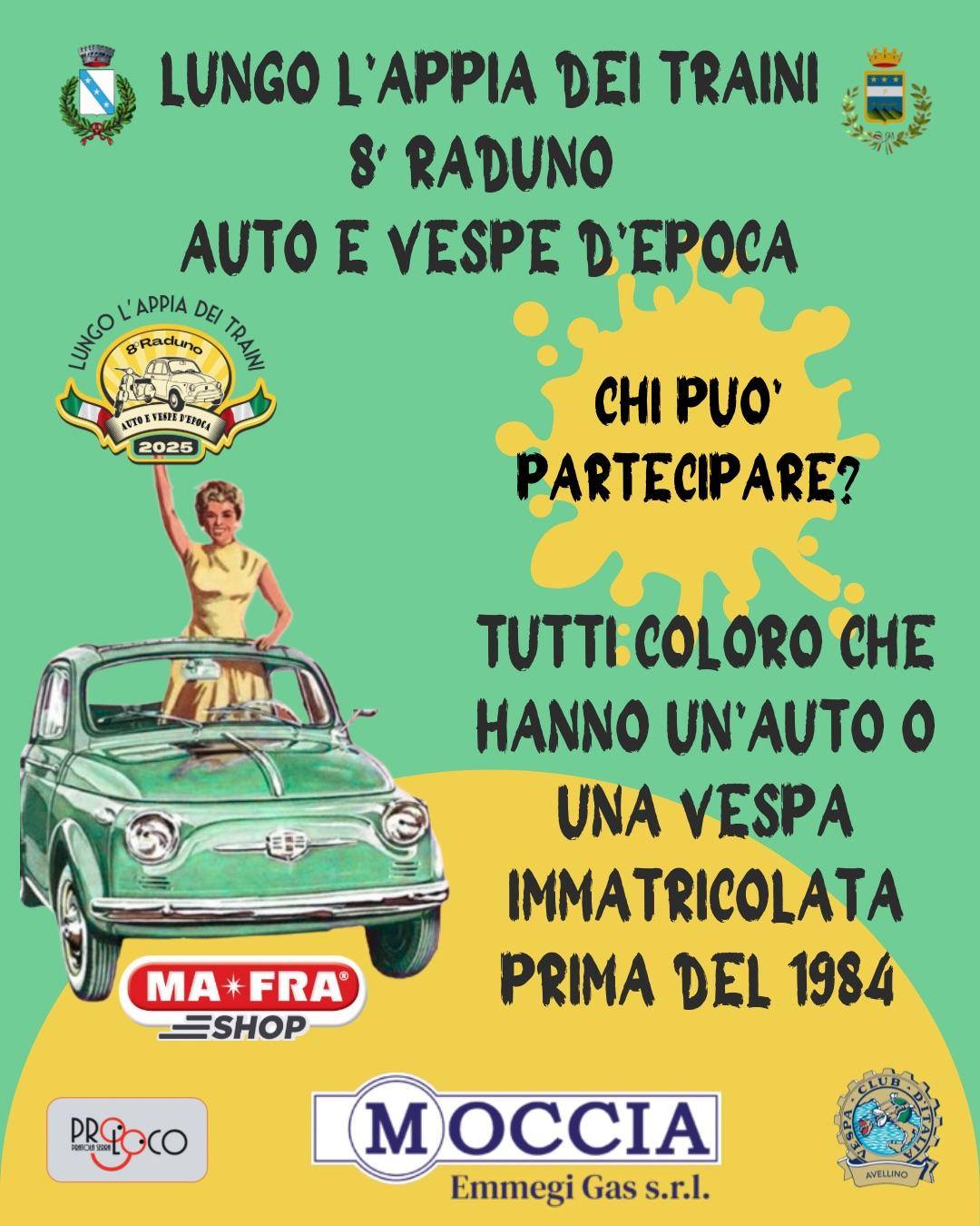 Tutto pronto per l’edizione 2025 di 'Lungo l’Appia dei Traini', l’attesissimo raduno gratuito di auto d’epoca e Vespe immatricolate prima del 1984 che animerà domenica 6 luglio Corso Vittorio Emanuele a Pratola Serra, con un programma che unisce passione motoristica, cultura locale e sapori autentici del territorio.