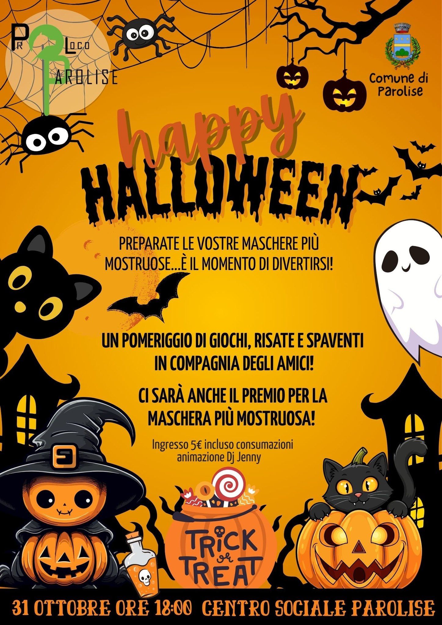 Presso il centro sociale di Parolise, la sera del 31 ottobre si festeggerà Halloween con una speciale festa dedicata ai più piccoli. Giochi, dolcetti e sorprese rallegreranno e animeranno la serata con l'obiettivo di far vivere la magia di Halloween in un clima festoso e accogliente. Libero spazio alla fantasia e alla creatività dunque che saranno premiate tramite uno speciale e simpatico concorso che decreterà come vincitrice "la maschera più brutta". Chi vuol far divertire i propri piccoli e non solo quindi non può mancare per non perdere l'occasione di una gioiosa serata in allegria.