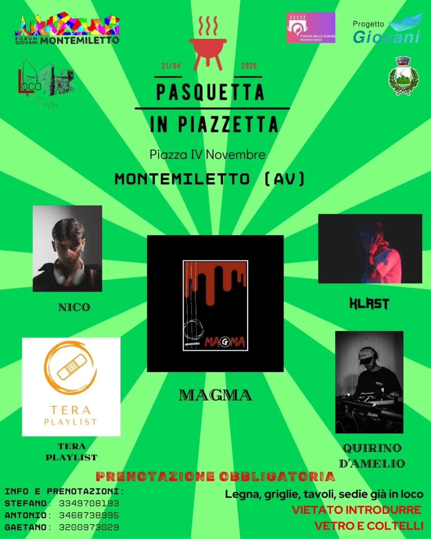 Una giornata all’insegna del divertimento, della musica e della condivisione in cui sarà possibile prenotare un tavolo, portare con sé il necessario per il pranzo e godersi un’atmosfera unica mentre l’organizzazione si occuperà di tutto il resto, dalle griglie ai tavoli fino all’intrattenimento. A fare da colonna sonora all’evento saranno le performance live della band Magma e i dj set di Nico, Klast, Quirino D’Amelio e Tera Playlist, che animeranno la piazza con selezioni musicali coinvolgenti. Non mancheranno cocktail bar, musica dal vivo e tanta voglia di stare insieme.
