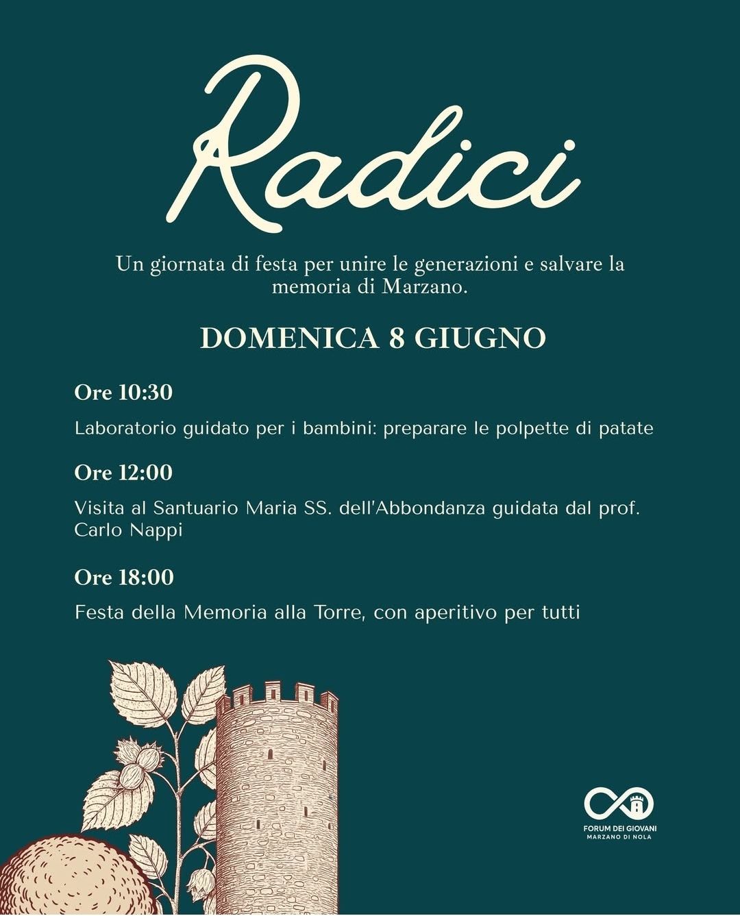 Il Comune di Marzano di Nola presenta "Radici", un evento dedicato alla memoria e alla comunità, organizzato con la collaborazione del "Forum dei Giovani".