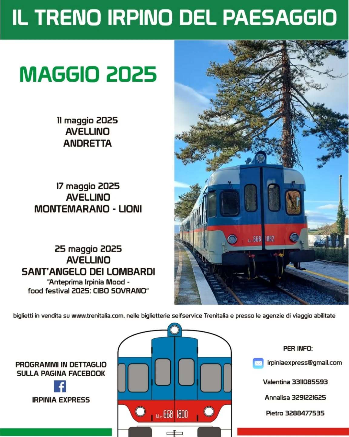 La prima tappa è in programma Domenica 11 Maggio, destinazione Andretta. Con partenza da Avellino, si potrà ammirare il percorso che porta fino al paese dell'irpinia d'Oriente per trascorrere una meravigliosa giornata visitando il Santuario della Vergine Stella del Mattino, il Museo della Civiltà Contadina e Artigiana e il centro storico. Due le opzioni pranzo. Il mese di Maggio prevederà altre due fermate: Montemarano-Lioni Sabato 17 e Sant'Angelo dei Lombardi Domenica 25