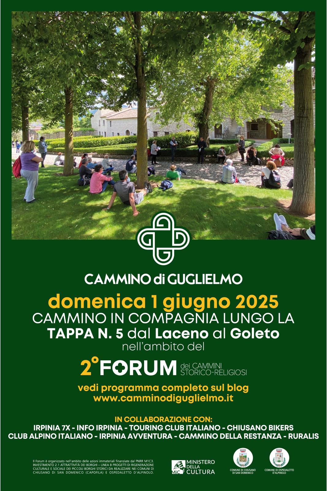 Ad oltre due anni di lavoro intenso portato avanti da un gruppo di professionisti e appassionati, sognatori e guide spirituali, il Cammino di Guglielmo oggi è una realtà affermata che ha già dimostrato non solo la validità, ma anche tutto il suo potenziale inespresso con la costruzione di una relazione tra le aree interne di Campania, Basilicata e Puglia. Proprio in questi giorni i primi camminatori autonomi, giunti da diverse regioni italiane hanno compiuto l’intero percorso di 320 km, dall’Abbazia di Montevergine fino alla Basilica del Santo Sepolcro di Barletta. L’Abbazia del Goleto, in Alta Irpinia, è l’arrivo della “Tappa 5” che parte dalla Grotta dell’Apparizione sul Lago Laceno e attraversa straordinari scenari paesaggistici montani passando per il Pozzo di S. Guglielmo e Fontigliano di Nusco. Proprio questa tappa sarà percorsa per intero domenica 1° giugno a conclusione del Forum.