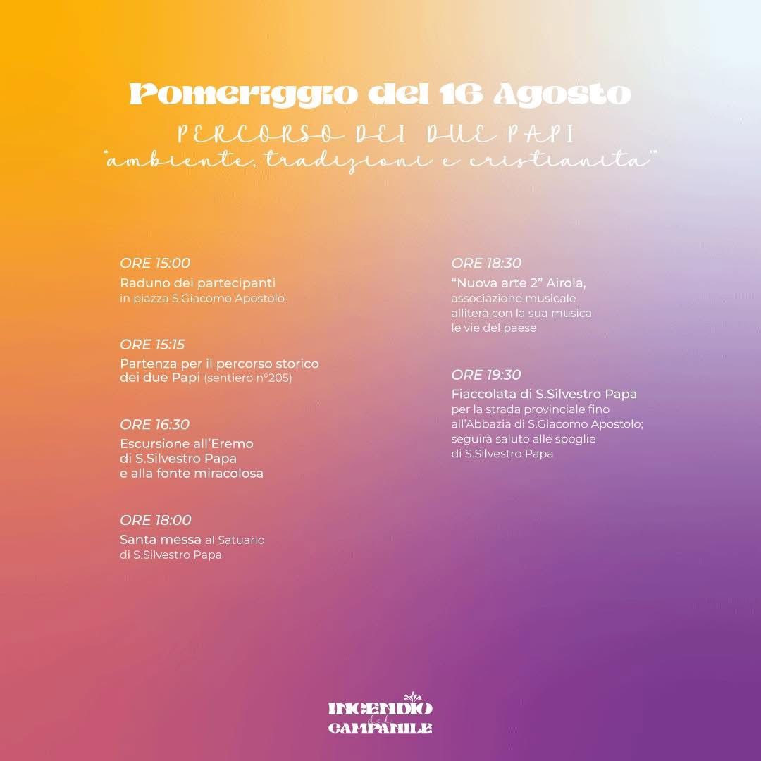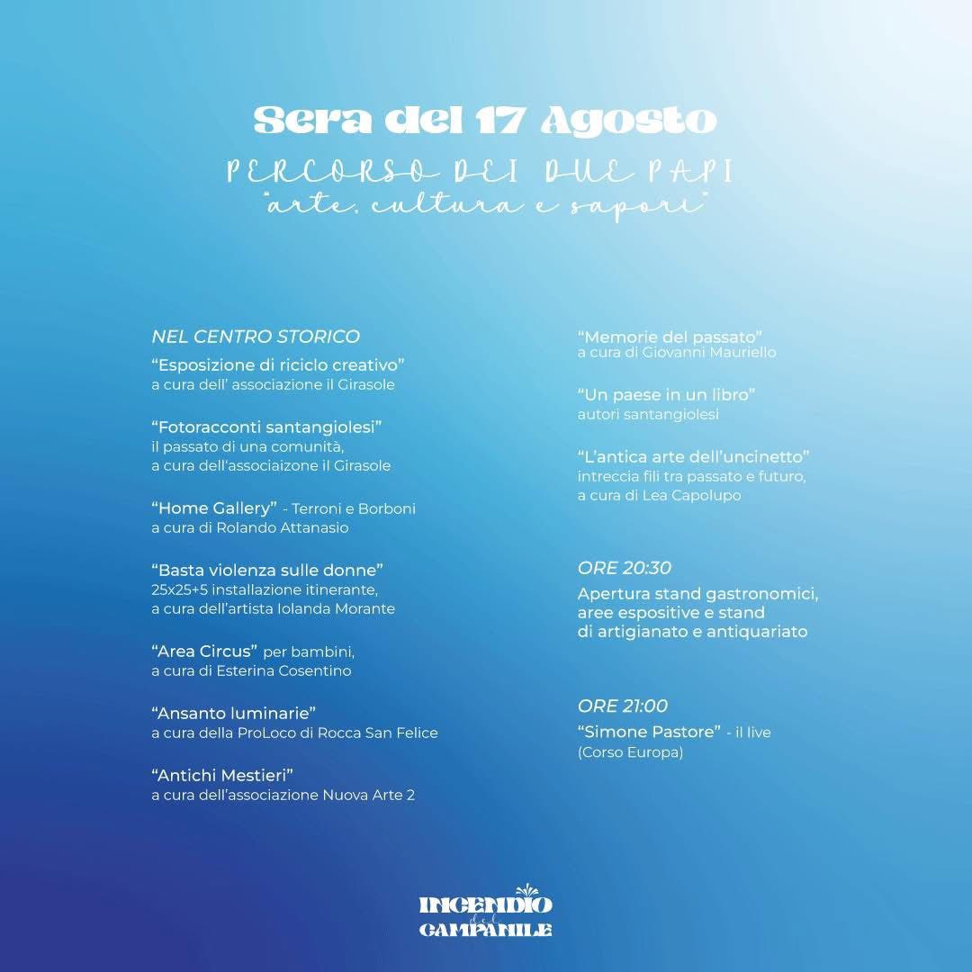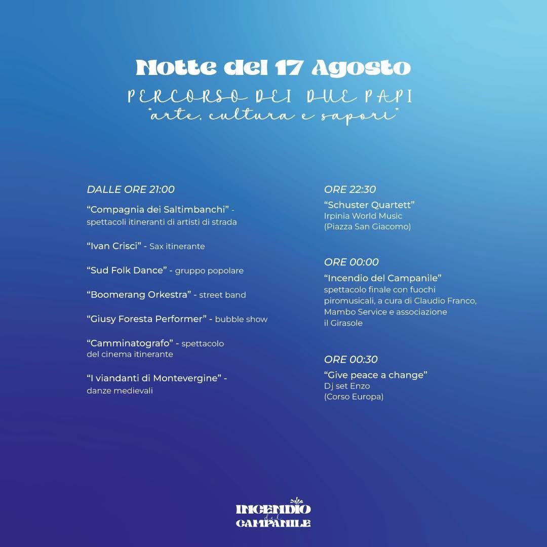 Ritorna il tradizionale evento dell’Incendio del Campanile, che si terrà il 16 e 17 agosto nel caratteristico borgo irpino di Sant’Angelo a Scala, meglio conosciuto come il “Paese dei due Papi”. Considerato tale per aver dato i natali a Papa Paolo IV, al secolo Gian Pietro Carafa (1476-1559), che nacque all’interno di Palazzo Carafa, situato proprio nel territorio santangiolese. Fu proprio Paolo IV a far nascere tra i fedeli santangiolesi la devozione per San Silvestro Papa dedicandogli due luoghi di culto: il santuario sul monte Vallatrone e una cappella nella chiesa di San Giacomo Apostolo, dove sono conservate alcune reliquie del santo.
