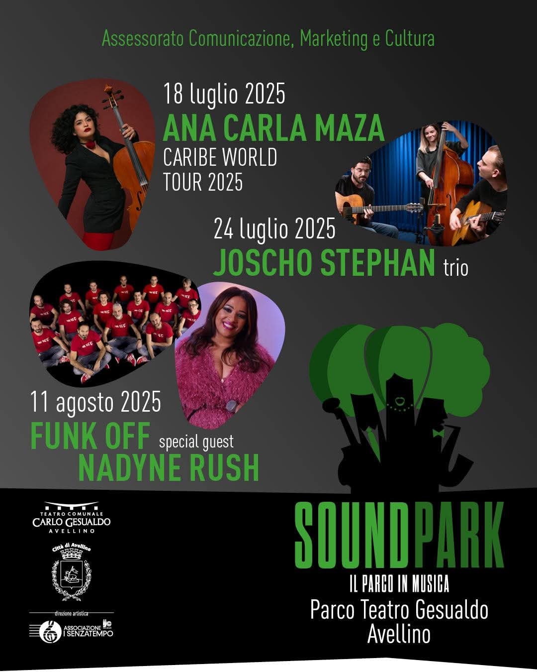 Avellino ospita "Sound Park", il parco in musica, tre concerti all'aperto tra luglio e agosto che hanno come protagonista la grande musica jazz nella suggestiva cornice del Parco del Teatro "Carlo Gesualdo".