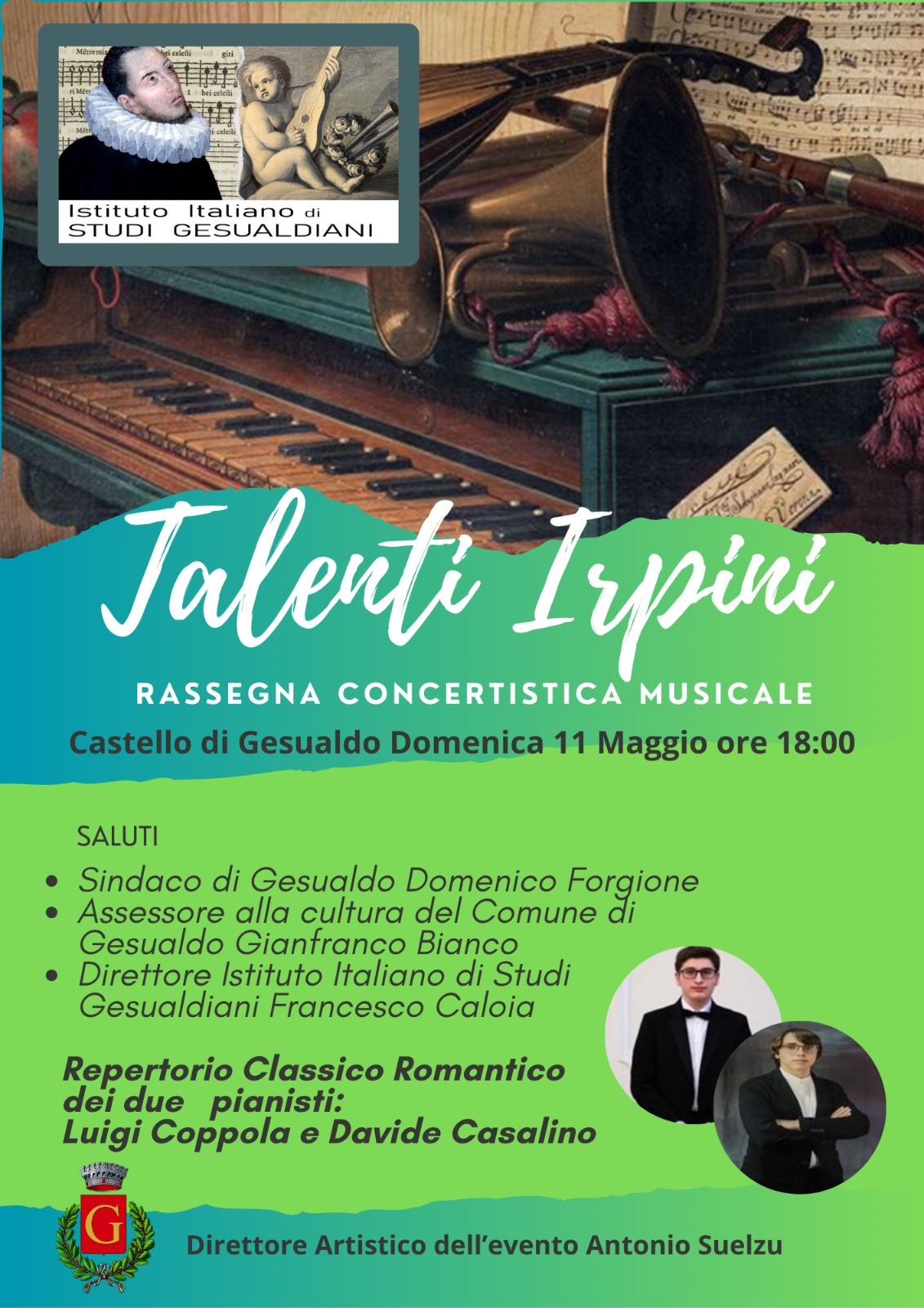 L’Istituto Italiano di Studi Gesualdiani presenta la rassegna concertistica musicale "Talenti Irpini", in programma Domenica 11 Maggio, alle ore 18.00, nella suggestiva location del Castello di Gesualdo.