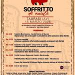 Il protagonista assoluto sarà il “soffritto” — o ’o suffritt, la celebre zuppa a base di frattaglie di maiale (fegato, cuore, polmone, milza e trachea), simbolo delle aree interne tra Irpinia e napoletano, preparato secondo ricette tramandate di generazione in generazione.