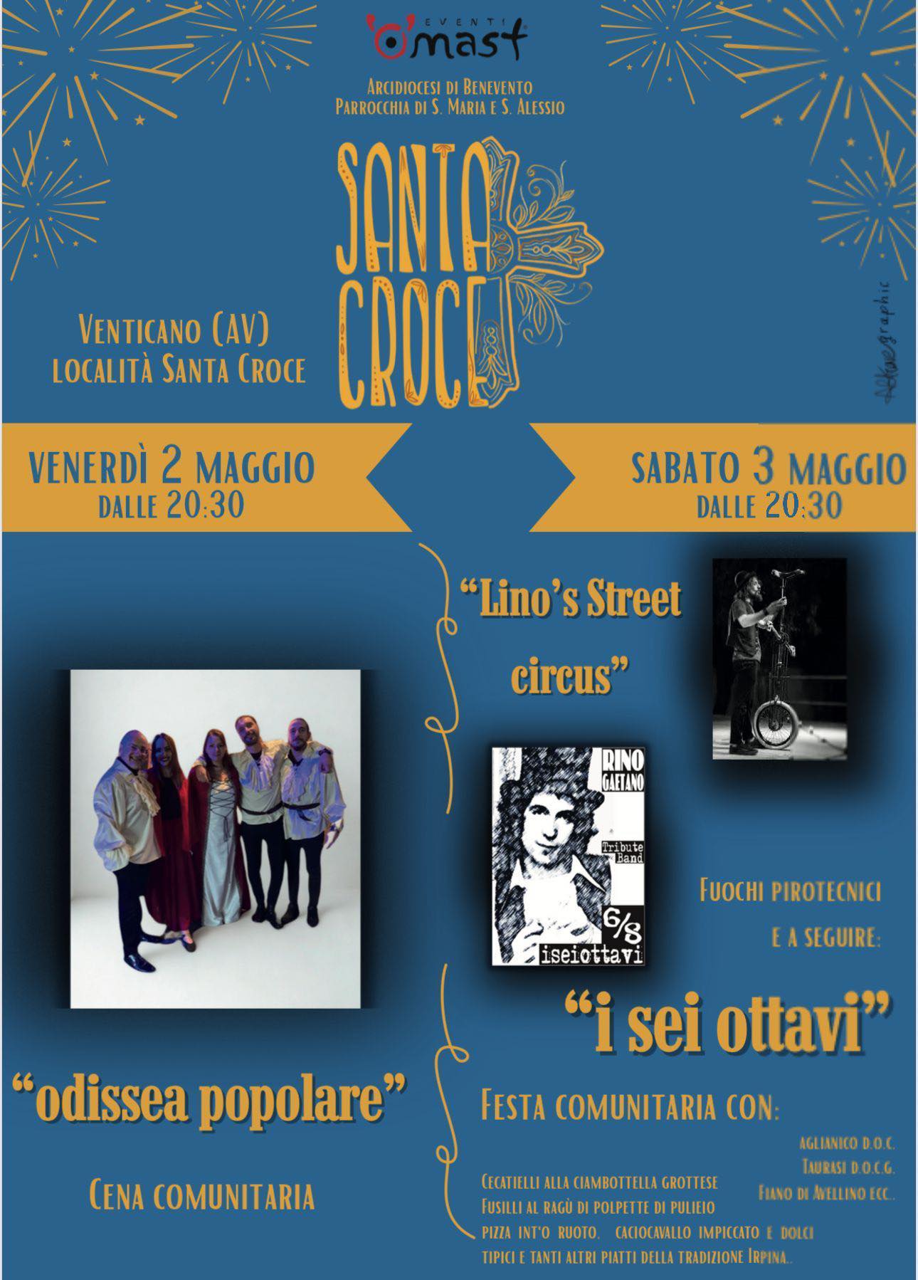 Il 2 e 3 maggio la comunità di Venticano si ritrova in località Santa Croce per celebrare la tradizionale Festa di Santa Croce, un appuntamento che unisce devozione, convivialità e spettacolo organizzato dal Comitato Santa Croce 2025 con la direzione artistica di Omast Eventi.