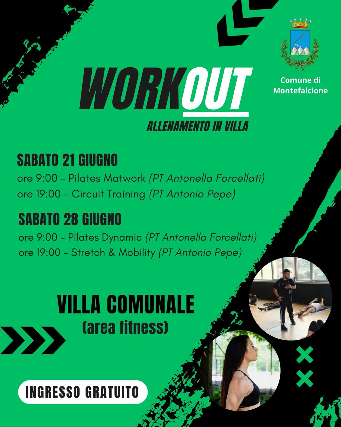 L'appuntamento è per sabato 21 e 28 giugno per un'iniziativa di allenamento gratuita e aperta a tutti, che si svolgerà presso l’area fitness della villa comunale, grazie alla preziosa collaborazione con i personal trainer montefalcionesi Antonella Forcellati e Antonio Pepe.