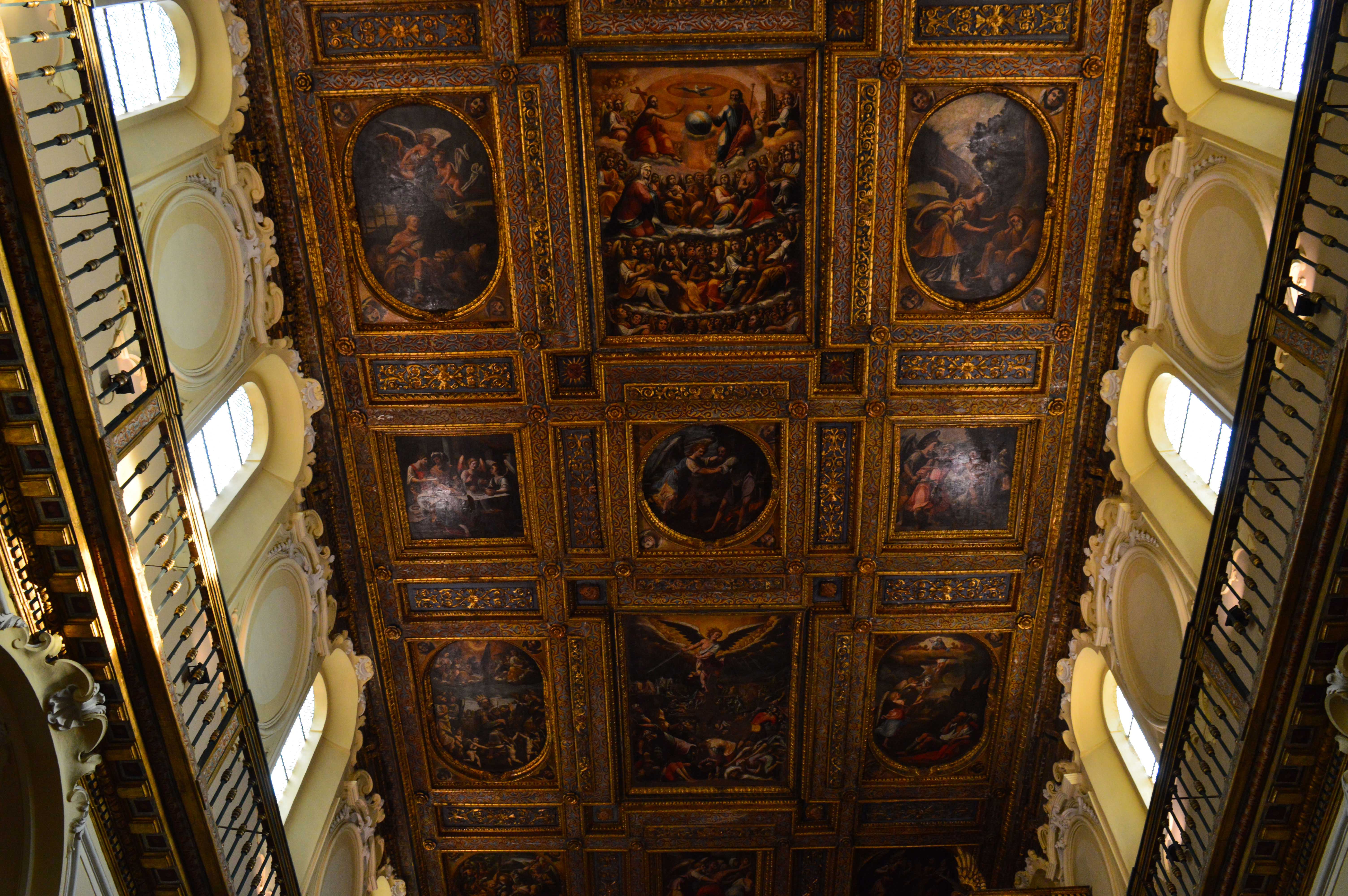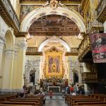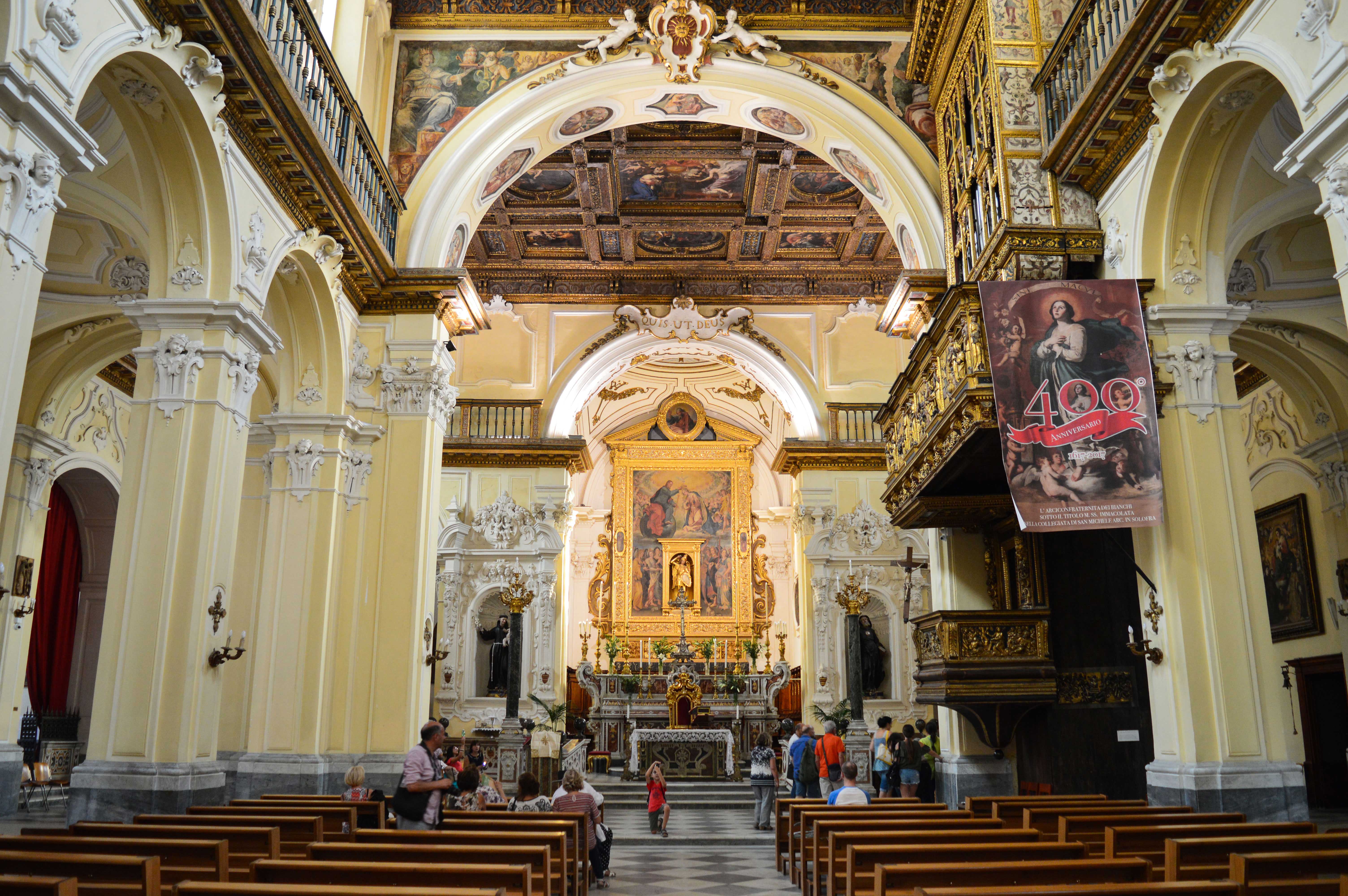 Giunti all'interno della Collegiata, lo sguardo dello spettatore si sofferma sulle 42 tele caratterizzanti il cassettonato ligneo, raffiguranti scene dell'Antico e Nuovo Testamento, attribuite a Giovanni Tommaso e Francesco Guarini (1611-1651) e impreziosite da un rivestimento d'oro che contraddistingue anche il pulpito, la cantoria con l'organo e la pala sull'altare maggiore. Oltre alle opere sublimi dei due pittori solofrani, l'edificio custodisce anche altri capolavori, quali la "Pentecoste" di Angelo Solimena (1629-1716), sovrastante un altare collocato nella navata destra, e l'"Incoronazione della Vergine" di Giovan Bernardo Lama (1530 circa-1630 circa).