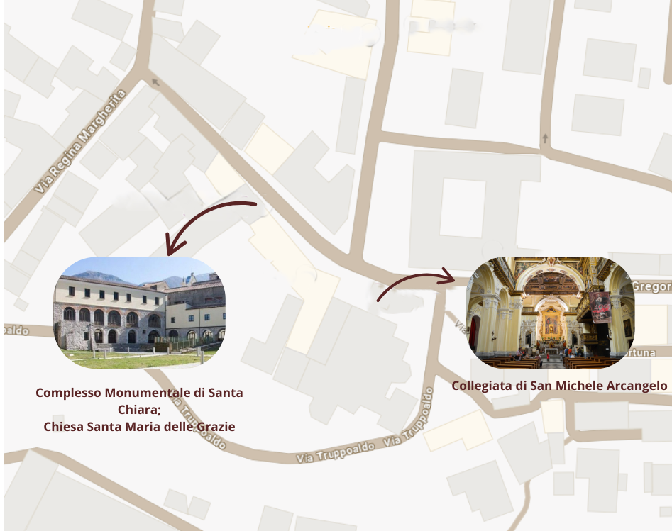 Il Complesso Monumentale di Santa Chiara è oggi sede della biblioteca comunale ed è adiacente alla Collegiata di San Michele Arcangelo che affaccia sull'omonima piazza.