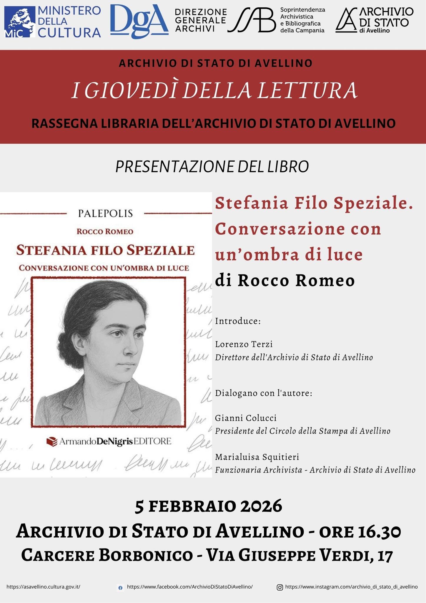 Giovedì 5 febbraio 2026, alle ore 16:30, si terrà un nuovo appuntamento della rassegna libraria dell’Archivio di Stato di Avellino “I giovedì della lettura”.