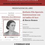 In tale occasione si presenterà il libro “Stefania Filo Speziale. Conversazione con un’ombra di luce”, di Rocco Romeo.