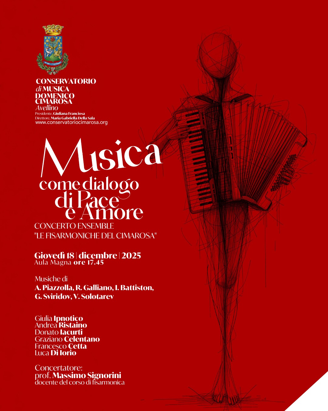 L’Aula Magna del Conservatorio “Domenico Cimarosa” di Avellino, giovedì 18 dicembre, alle ore 17.45, accoglierà l’evento “Musica come dialogo di Pace e Amore”, un concerto che vede protagonisti gli studenti dell’istituto.