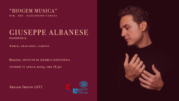 Il concerto comprende capolavori pianistici di Carl Maria von Weber, Isaac Albéniz ed Enrique Granados. Giuseppe Albanese è tra pianisti più acclamati della sua generazione, affermato didatta e vincitore di celebri premi internazionali, su tutti, il ‘Vendom Prize’. "Albanese è testimone – aggiunge il direttore artistico di Biogem Musica, Nazzareno Carusi – dell’incontro tra la forza del pensiero filosofico, il genio dei compositori cui dedica lo studio e il proprio innato talento musicale e pianistico, sbocciato precocemente e costantemente confermato da una ricca attività concertistica e discografica". "Laureato in Filosofia, Albanese continua da due decenni almeno – conclude Carusi – a esprimere una sintesi costante tra le due culture, iniziata dagli anni universitari giovanili con una tesi pregevolissima su ‘L’estetica di Liszt nelle Années de Pélerinage’".