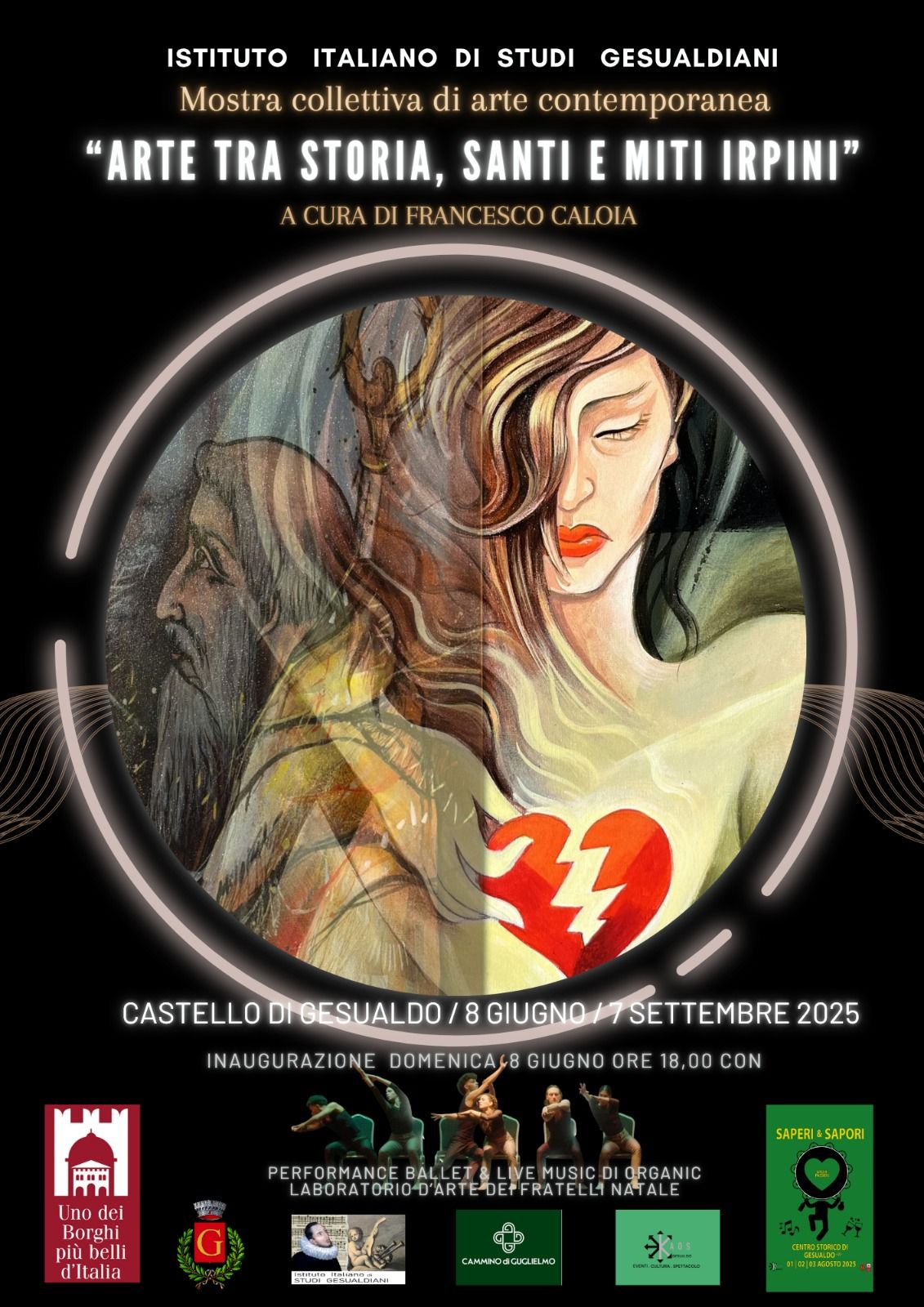 Dall’8 Giugno al 7 Settembre 2025, a Gesualdo, negli spazi espositivi del Castello, l’Istituto Italiano di Studi Gesualdiani, voluto dall’Amministrazione Comunale, organizza la mostra d’Arte Contemporanea “Arte tra Storia, Santi e Miti Irpini” a cura del Direttore Artistico Francesco Caloia.