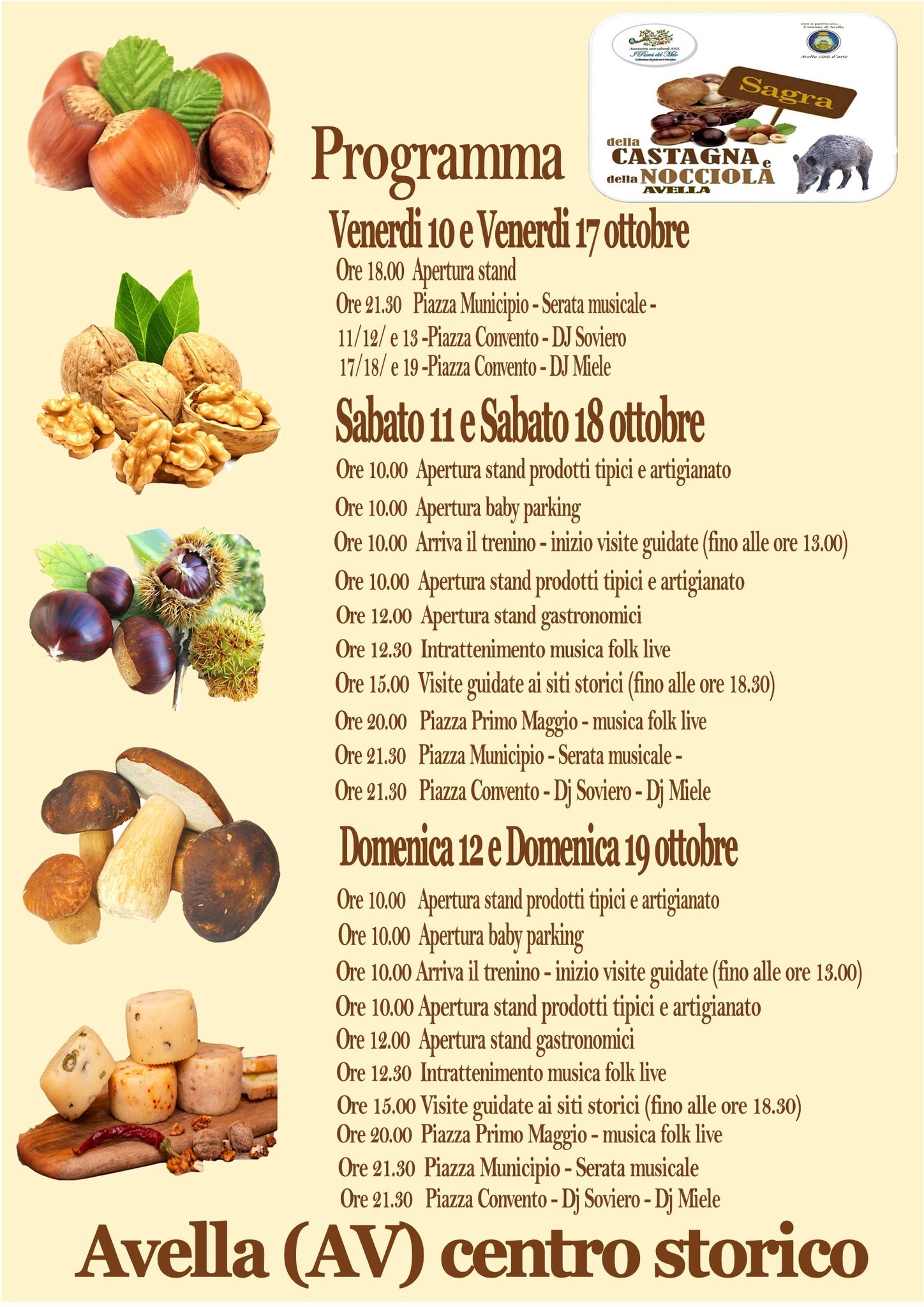 L’evento organizzato dall’Associazione Socio Culturale “I Rami del Melo” con il patrocinio del Comune di Avella, è dedicato alla valorizzazione, promozione delle eccellenze enogastronomiche irpine e i prodotti tipici locali più rappresentativi quali: la Nocciola Avellana (Nux Abellana), Noci, Castagne, Porcini, Olio Locale, Cinghiale, Funghi, il tutto accompagnato dall’ottimo Aglianico Irpino e da birra sia artigianale che industriale .