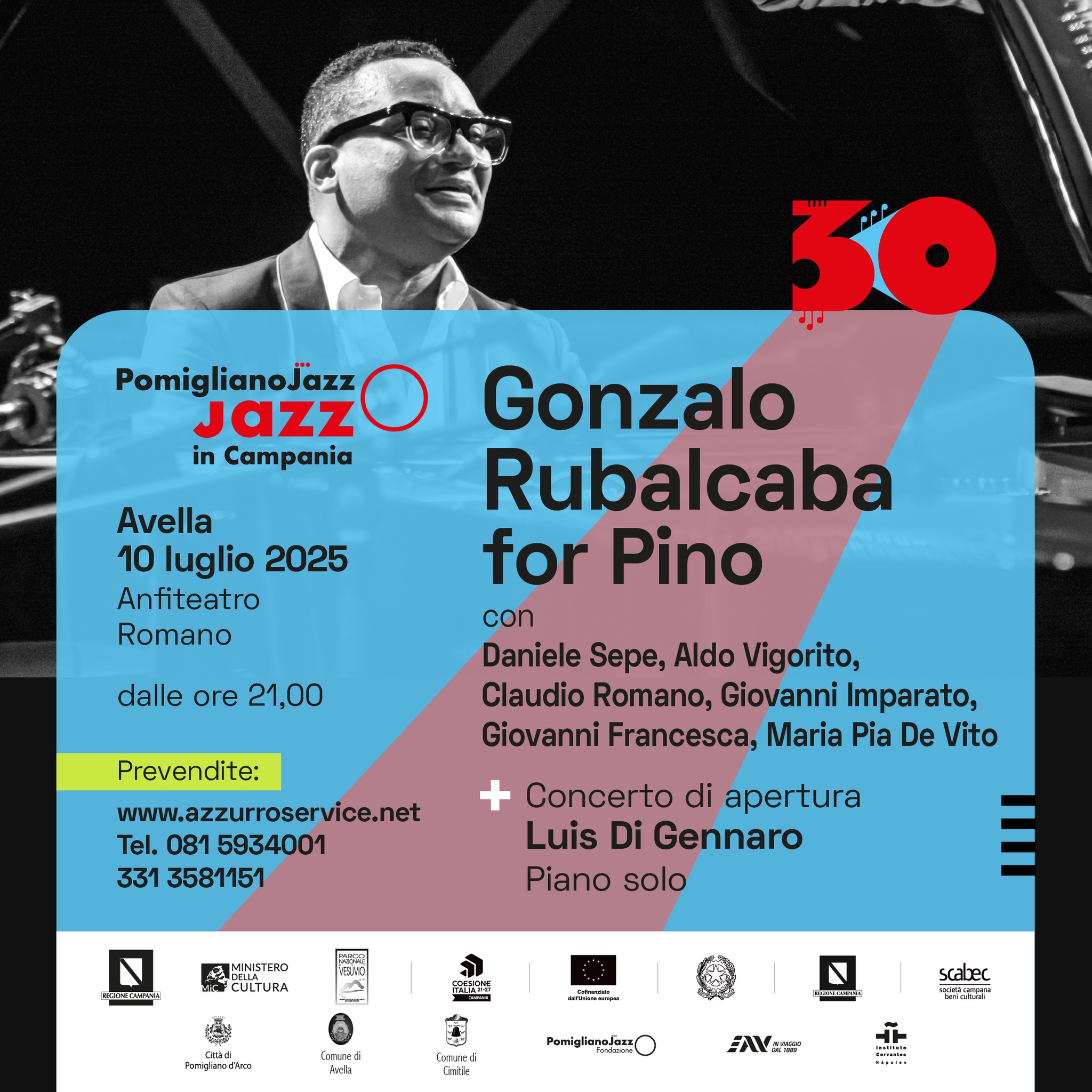 Protagonista il celebre pianista e compositore cubano Gonzalo Rubalcaba, vincitore di tre Grammy e quattro Latin Grammy, che presenterà in anteprima “Gonzalo Rubalcaba for Pino”, omaggio a Pino Daniele, a dieci anni dalla sua scomparsa.