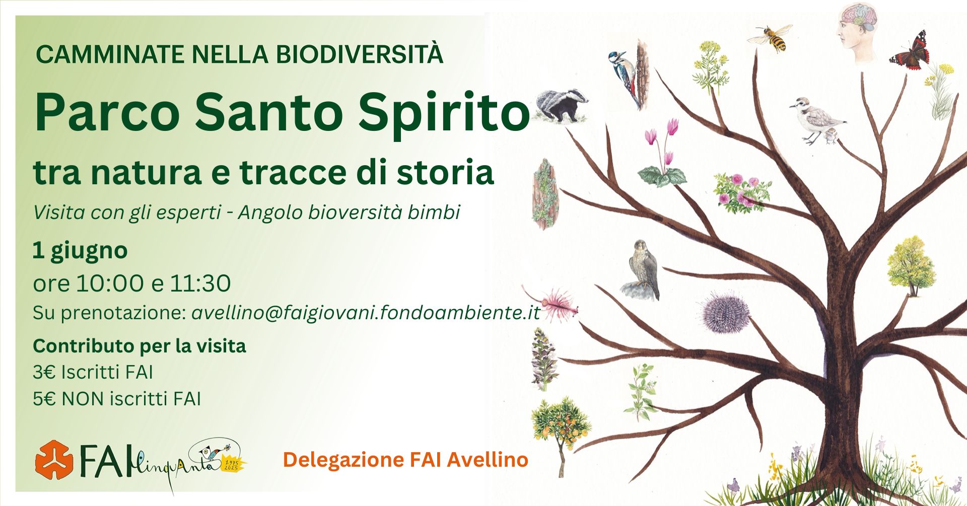 La biodiversità sarà il tema al centro dell’appuntamento “Parco Santo Spirito, tra natura e tracce di storia”, di domenica 1° giugno, organizzato dalla Delegazione Fai di Avellino.