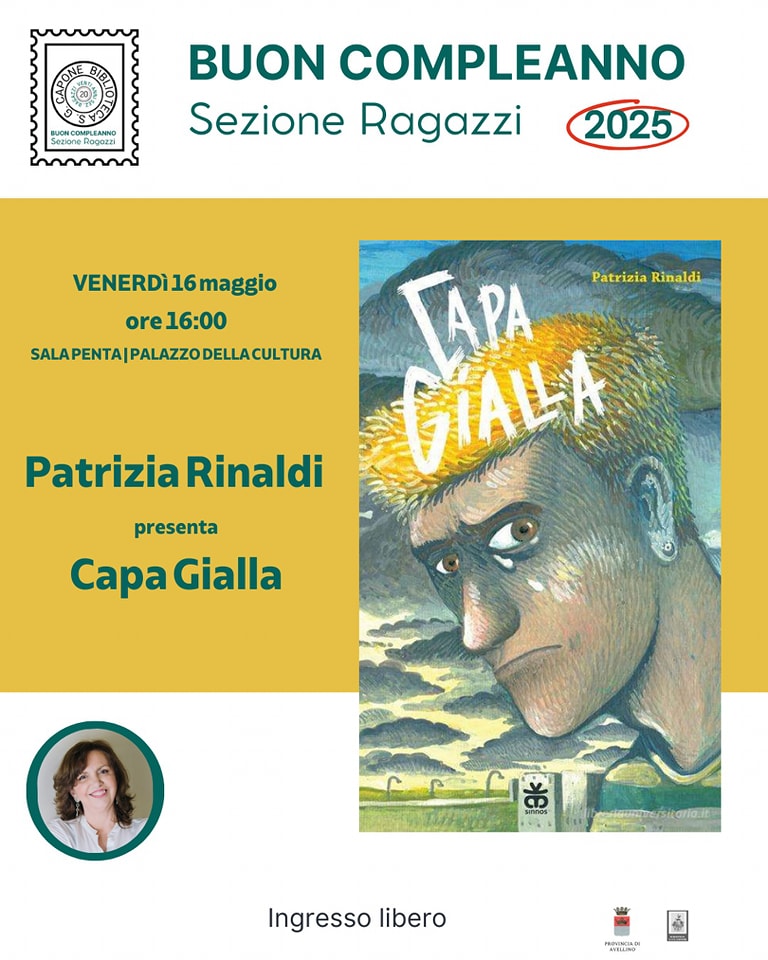 La Biblioteca Provinciale di Avellino, venerdì 16 maggio alle ore 16:00 ospita in Sala Penta l'autrice Patrizia Rinaldi che presenta il suo ultimo libro "Capa Gialla".