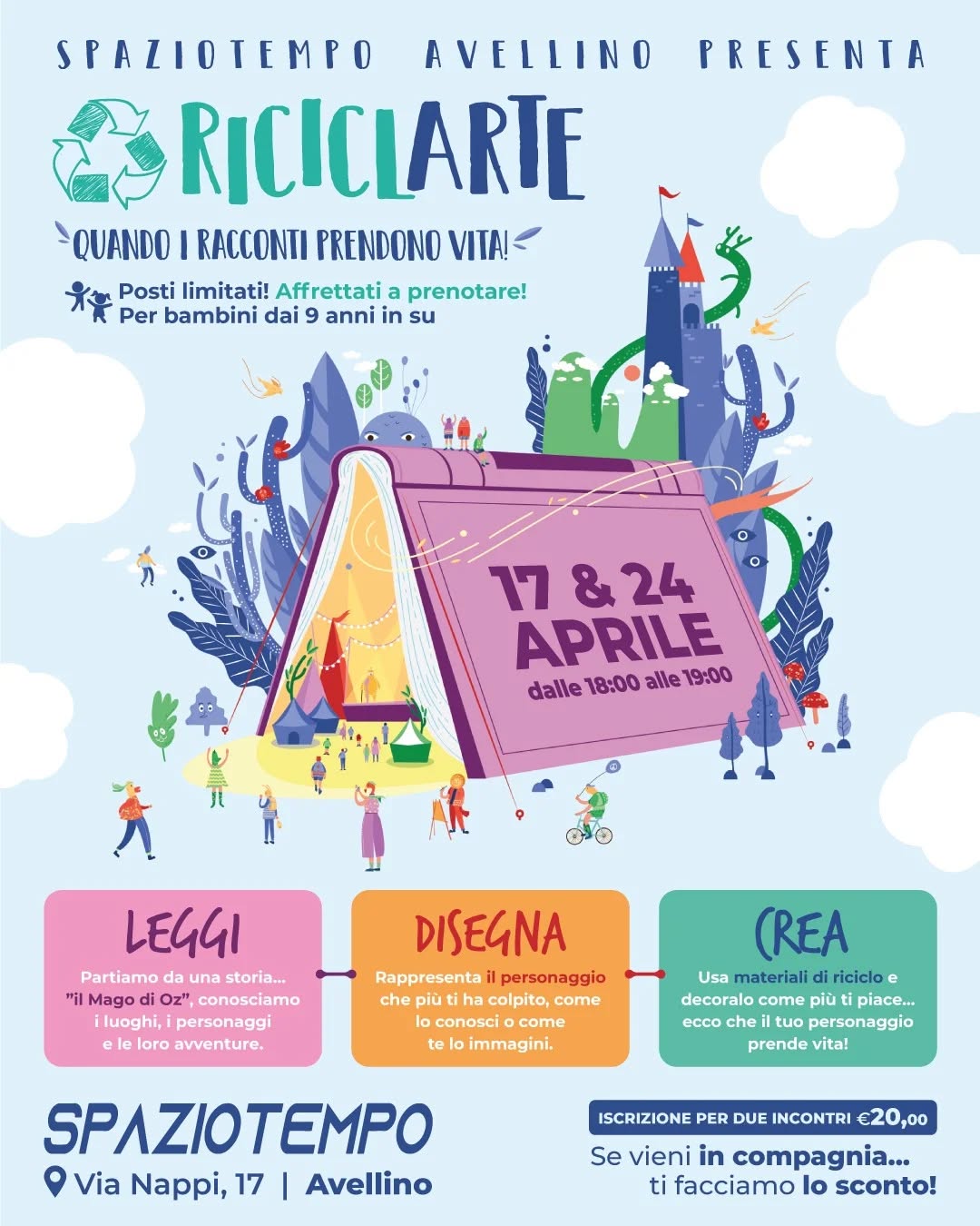 Giovedì 17 e 24 aprile, dalle ore 18:00 alle ore 19:00, lo spazio culturale Spaziotempo di Via Nappi 17 ospiterà “Leggi, Disegna, Crea”, un originale workshop di upcycling dedicato al riuso creativo di materiali di scarto.